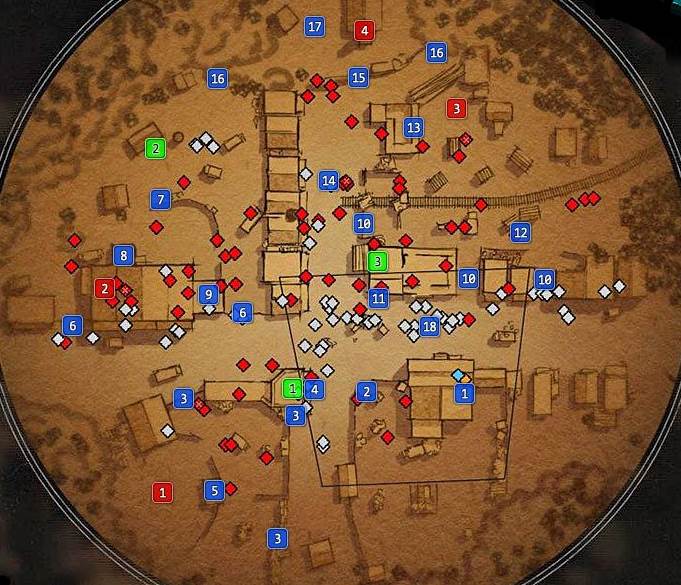 Мы отметили все важные места вокруг ограбленного поезда и подробно описали каждое из них. Мы также включили все задачи (значки) в миссию 2, и они относятся, например, к спасению всех невинных людей или убийству бандитов динамитом.
