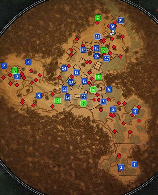 Синие точки указывают на все важные места, которые можно исследовать.