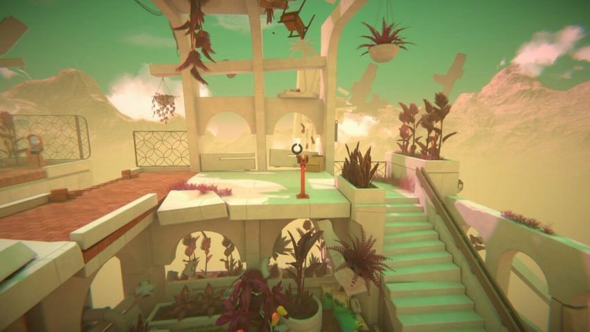 Пройдите на новую фотографию, затем поверните направо у вишневого дерева. Поверните налево в конце коридора и поднимитесь по лестнице. Оказавшись на балконе, игроки смогут выстроить фото с изображением телепорта.