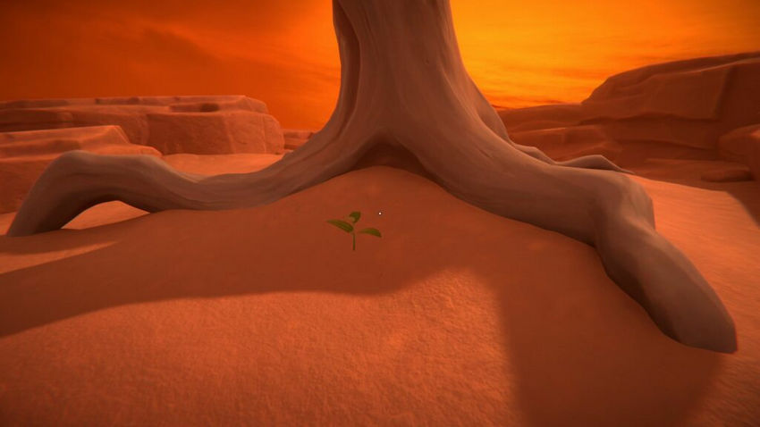 Используйте телепорт, когда он будет включен. Затем подойдите к мертвому дереву и посмотрите на его подножие, чтобы найти зеленый саженец. Поднимите его.