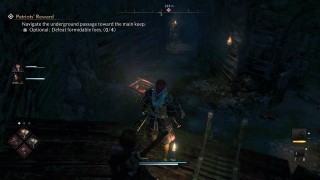 Вы находитесь в другой большой комнате, а над вами ходят враги. Вы можете либо уничтожить этих врагов с помощью оружия дальнего боя, либо промчаться мимо них к арке в задней левой части комнаты. Следуйте по тропе, пока не появится левый поворот, вокруг которого будет враг с еще одной ловушкой из бревен. Пройдите вокруг, чтобы активировать её, а затем нырните обратно. Убейте врага там, а затем продолжайте идти по коридору вперед. Незадолго до того, как вы выйдете обратно в комнату, в которой вы находились ранее, но на более высоком месте, с левой стороны будет небольшой путь, по которому вы сможете пройти. Это приведет вас в небольшую комнату, в которой находится сундук с сокровищами и первый грозный враг.