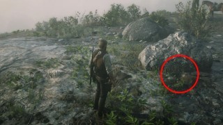 Узнать то, где находится нужная поляна с рисунками, можно будет по трём мало незаметным гейзерам. На этой поляне следует отыскать валун, который отмечен красным кружком на скриншоте ниже. Суть в том, что у основания находится маленькая щель, внутри которой была спрятана следующая карта сокровищ.